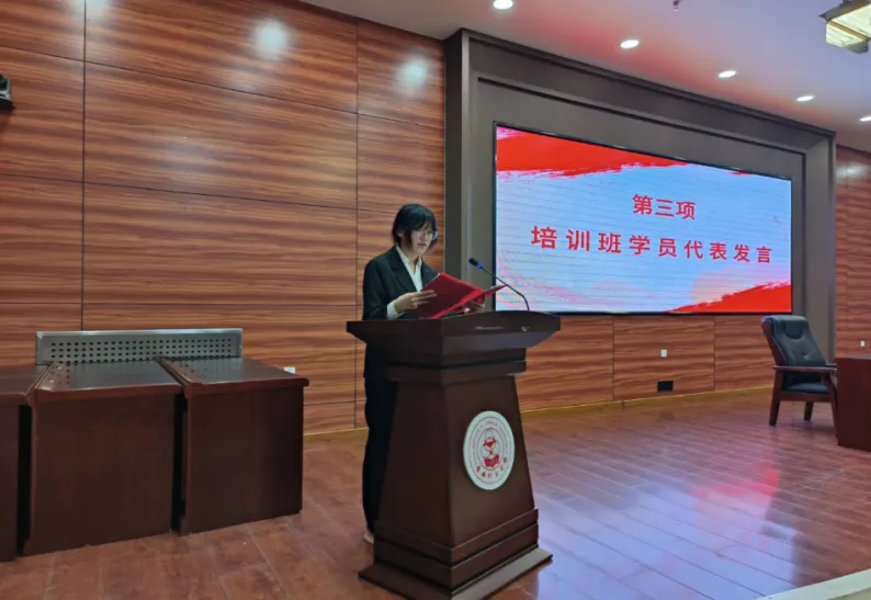 会议第三项,入党积极分子代表张雪莹上台发言,在发言中,她表达了自己想要加入中国共产党的决心,同时号召全体学员们在本次入党积极分子培训班中,严格要求自己,遵守国家法律,严守党规党纪,努力增强党性修养和政治素质,以实际行动争取早日加入中国共产党。