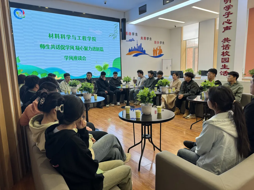 为进一步加强学院学风建设,营造良好的学习氛围,激发同学们的学习热情,提升学生的学习素养和综合素质,材料学院于4月10日在化苑“一站式”学生社区服务大厅开展“师生共话促学风,凝心聚力谱新篇”学风座谈会,此次会议由学院党委副书记钟凡毅主持,全体辅导员及寝室长参会,以专业为单位分别召开了四场座谈会。