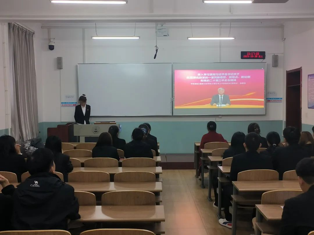 活动伊始,我院教工党员和学生党员通过观看视频回顾了党的二十届三中全会的主要内容,视频中详细解读了全会公报和《中共中央关于进一步全面深化改革、推进中国式现代化的决定》(以下简称《决定》)中的三大板块内容,重点讲解了300多项重要改革措施的背景、意义和实施路径。《决定》科学谋划了围绕中国式现代化进一步全面深化改革的总体部署,明确了进一步全面深化改革的指导思想、总目标、重大原则,重点部署了未来五年的重大改革举措。这些改革措施高瞻远瞩、切实可行,为新时代中国特色社会主义事业的发展指明了方向。