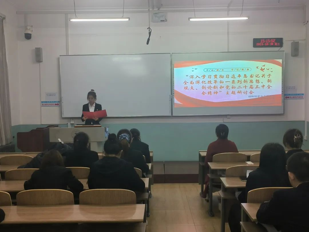 为深入学习贯彻习近平总书记关于全面深化改革的一系列新思想、新观点、新论断和党的二十届三中全会精神,为深刻领会和把握进一步全面深化改革的主题、重大原则、重大举措、根本保证等四个方面。进一步激发我院教工党员和学生党员的学习工作热情,提升创新能力,践行“坚定不移听党话、跟党走”的行动指南。材料科学与工程学院党委于2024年10月28日—11月3日开展“深入学习贯彻习近平总书记关于全面深化改革的一系列新思想、新观点、新论断和党的二十届三中全会精神”主题学习研讨会。