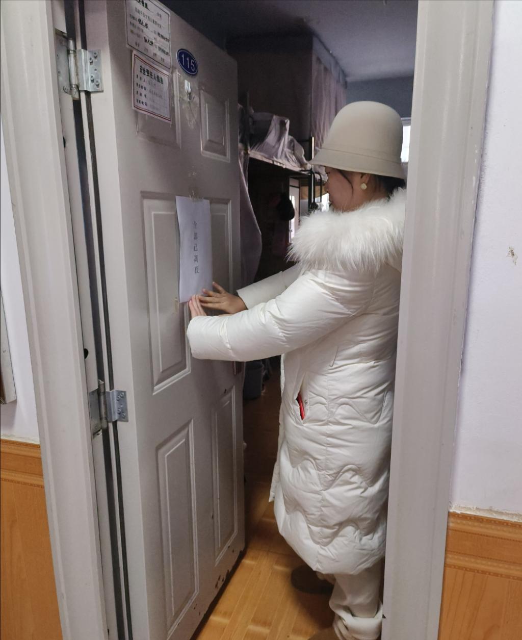“贴封条”是为了在寒假期间保护学生的个人物品和寝室安全。也意味着寝室进入了“休眠”状态,等待同学们下学期归来。学院老师们的贴心问候,让同学们倍受温暖,他们纷纷表达谢意,并表示会严格遵守寒假期间的学生教育管理要求,积极配合学院做好离校安全返乡工作。