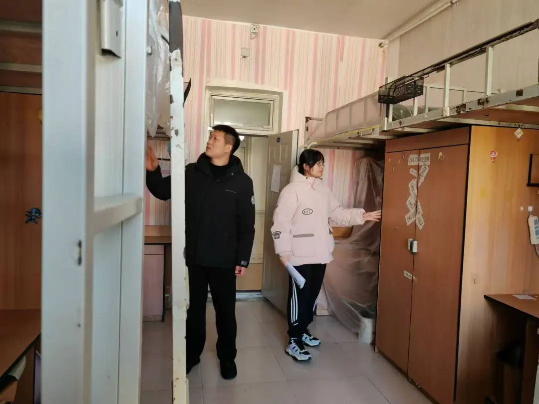 走访过程中,我院辅导员展鹤、张清文和周奕彤认真检查每一间寝室,确保电器设备已关闭、门窗已锁好。对于存在安全隐患的地方,及时记录并安排整改。