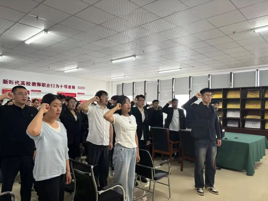 会议第五项,由我院毕业生优秀党员代表薄克寅带领参会人员重温入党誓词,我们再一次举起右手,铮铮誓言激励着同志们时刻牢记自己是一名共产党员,在即将踏上人生新征程的关键时刻,回望初心、淬炼党性、砥砺前行。