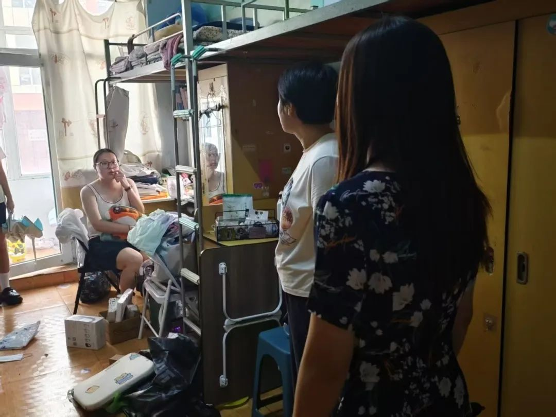走访过程中,领导老师们与毕业生亲切交谈,详细询问同学们的毕业去向、未来规划等,了解他们在就业或升学过程中遇到的困难和问题。并且,仔细查看同学们的行李打包情况,叮嘱道:“收拾行李重要物品一定要带走,自己路上注意安全,以后要是遇到任何问题,可以随时联系我们,记得常回家看看。”对于选择考研继续深造的同学,鼓励他们保持学习热情,在更高的学术平台上勇攀高峰;对于即将步入职场的毕业生,希望他们脚踏实地,在各自的工作岗位上实现人生价值。