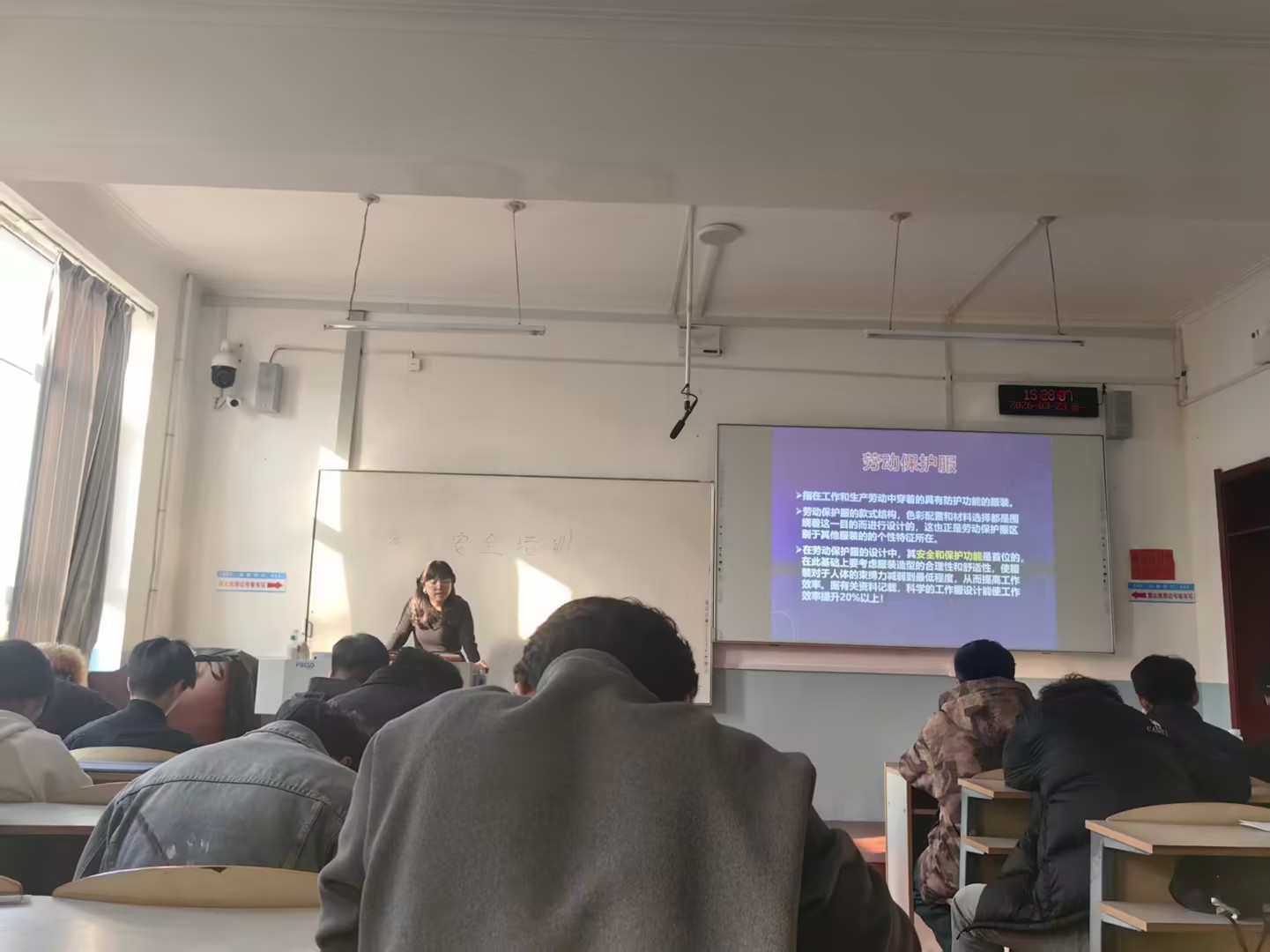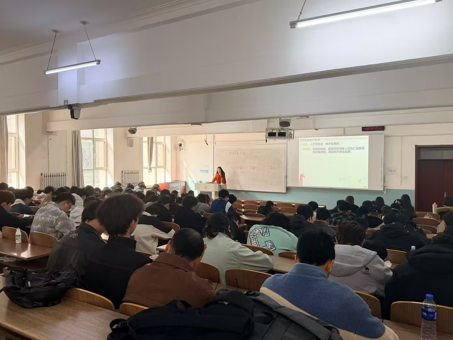 专业实操安全环节,各系老师结合材料行业生产一线特点,详解岗位安全准则。针对高分子材料合成、金属材料加工、无机非金属材料高温烧制等典型实习场景,逐一拆解高危操作风险,讲解高温设备、危化试剂、大型机床的规范使用流程,强调必须依规佩戴劳保用品,严禁违规操作。同时结合行业典型安全事故,剖析事故教训,普及危化品使用规范及火灾、灼伤、化学品泄漏等突发情况的应急处置方法,叮嘱学生牢记安全准则,发现隐患第一时间上报导师。